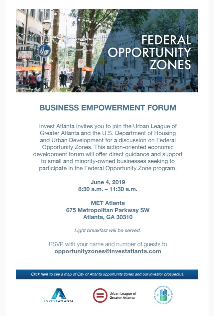 Atlanta’s Federal Opportunity Zones Posted on May 24, 2019 by NPU-W Join Invest Atlanta and the Urban League of Greater Atlanta… Share this: Click to share on X (Opens in new window) X Click to share on Facebook (Opens in new window) Facebook Like Loading...