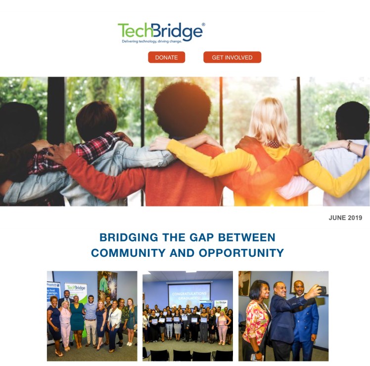 TechBridge is bridging the gap between community and opportunity. Please see the attached flyer for more information on what TechBridge is doing, and if interesting in joining in to help build a technology career pipeline please visit here.