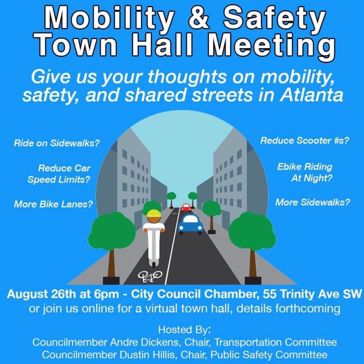 Mobility & Safety Town Hall Meeting Posted on August 12, 2019 by NPU-W Share your thoughts on mobility safety in Atlanta. Share this: Click to share on X (Opens in new window) X Click to share on Facebook (Opens in new window) Facebook Like Loading...