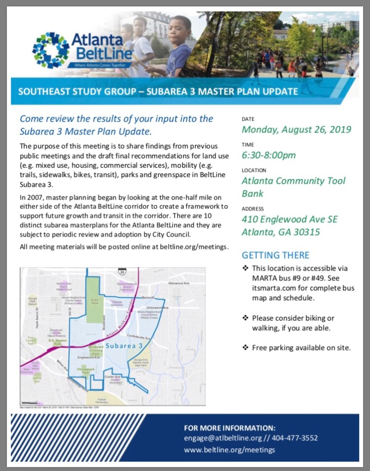 Three Upcoming Atlanta BeltLine Public Meetings Posted on August 14, 2019 by NPU-W Upcoming Study Groups. Share this: Click to share on X (Opens in new window) X Click to share on Facebook (Opens in new window) Facebook Like Loading...