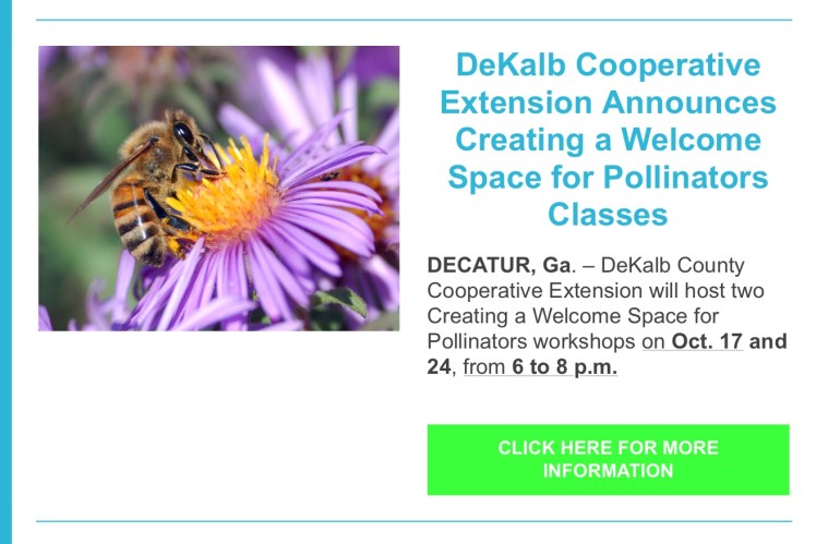 DeKalb Cooperative Extension Announces Creating a Welcome Space for Pollinators Classes Posted on October 11, 2019 by NPU-W Click here for more information. Share this: Click to share on X (Opens in new window) X Click to share on Facebook (Opens in new window) Facebook Like Loading...