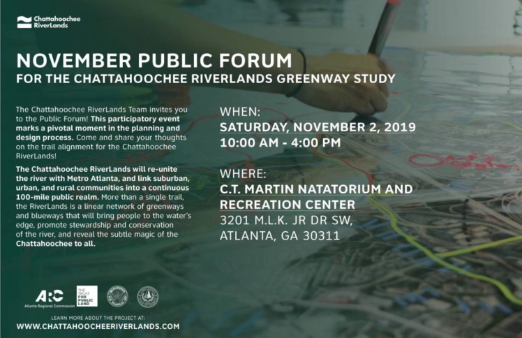How Will the Chattahoochee RiverLands Take Shape in Your Community? Saturday, Nov. 2 and Share Your Input Posted on October 30, 2019 by NPU-W Share this: Click to share on X (Opens in new window) X Click to share on Facebook (Opens in new window) Facebook Like Loading...