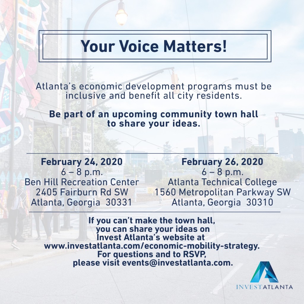 Invest Atlanta Community Town Halls Posted on February 6, 2020February 6, 2020 by NPU-W Share this: Click to share on X (Opens in new window) X Click to share on Facebook (Opens in new window) Facebook Like Loading...