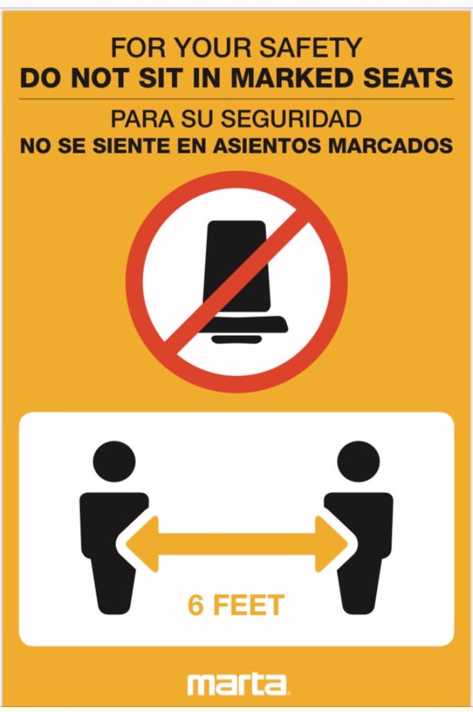 - Crowding on Buses: Bus operators have received notice of our protocol to alert the Bus Communications Center when the bus reaches 50% capacity and to not board additional customers when the bus is 70% full and to display the BUS FULL header (see attached memo from 4/1/2020). Starting Friday 4/10, customers will be able to call 404-848-5000 and follow the menu options to report a full bus directly to Bus Communications so that an additional bus can be dispatched. Starting Monday, 4/13 placards will be added to 50% bus seats to help enforce social distancing (see also attached).