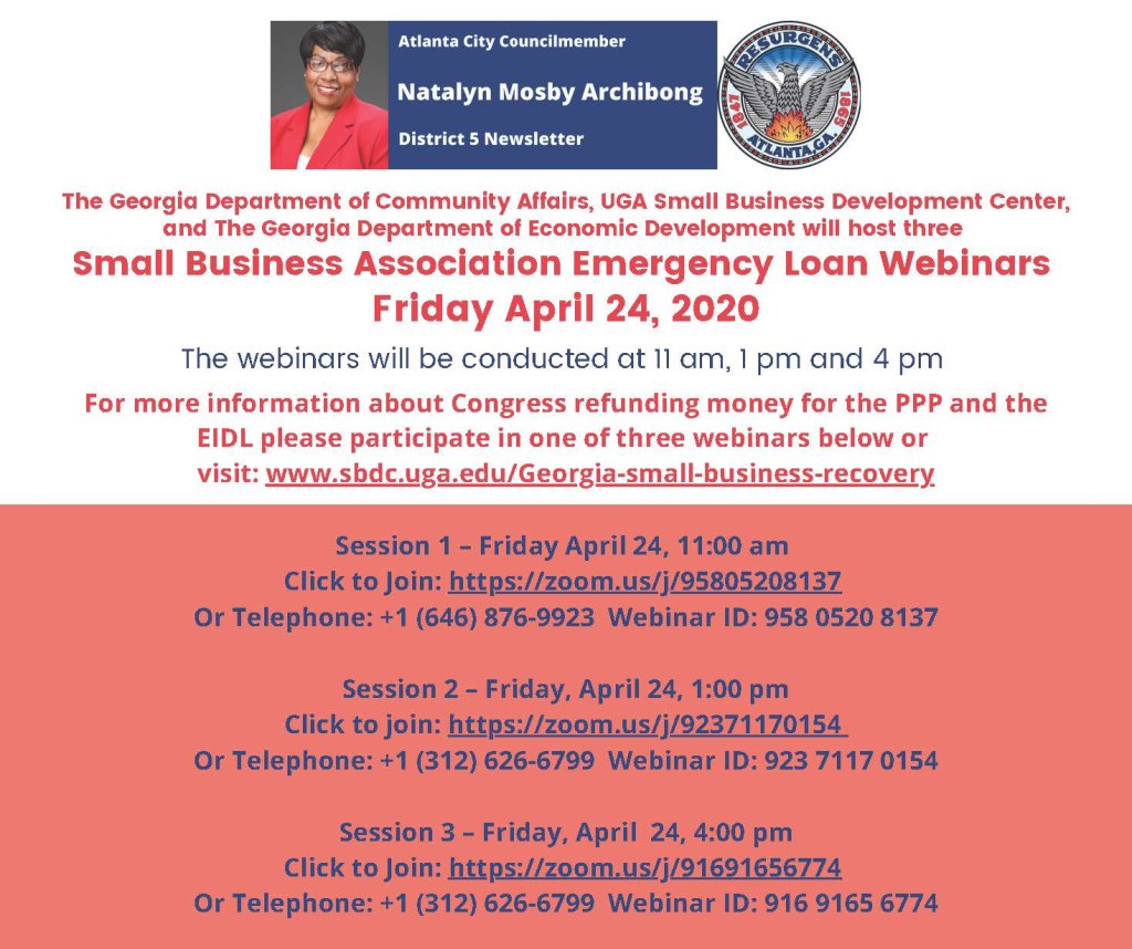 SBA Emergency Loan Webinars | Friday April 24 | Posted on April 23, 2020 by NPU-W Share this: Click to share on X (Opens in new window) X Click to share on Facebook (Opens in new window) Facebook Like Loading...