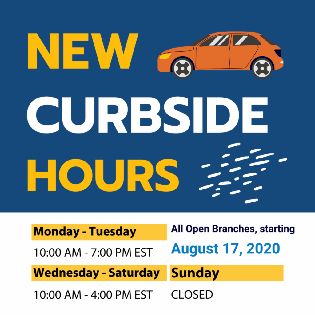 While the Library continues to offer Curbside services at most library branches, hours will be expanding to meet the needs of patrons.