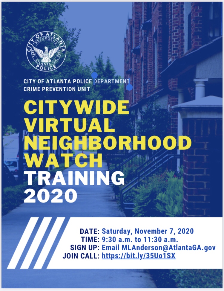 Citywide Virtual Neighborhood Watch Training Posted on October 13, 2020 by NPU-W Share this: Click to share on X (Opens in new window) X Click to share on Facebook (Opens in new window) Facebook Like Loading...