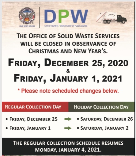 Solid Waste Services Christmas holiday collection schedule changes Posted on December 23, 2020 by NPU-W Share this: Click to share on X (Opens in new window) X Click to share on Facebook (Opens in new window) Facebook Like Loading...