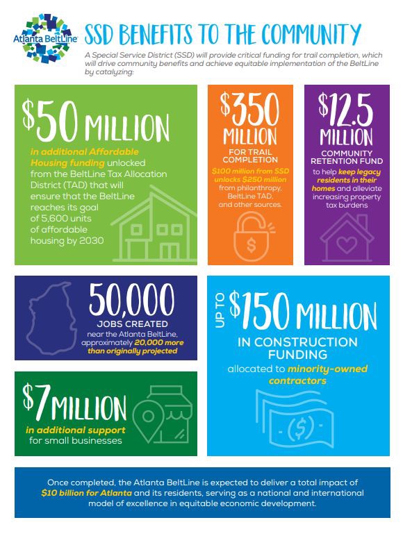 Learn more about how BeltLine communities will benefit from the additional funds at beltline.org/ssd2021 and find answers to frequently asked questions. You also can attend one of our community meetings.