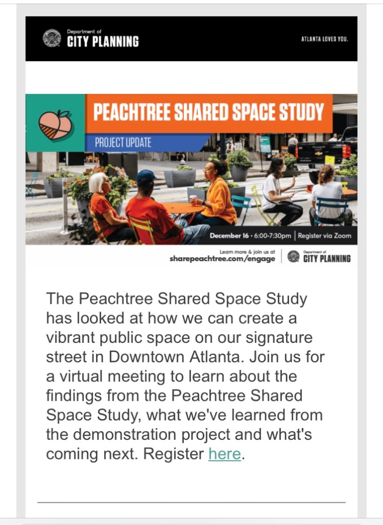 Let’s talk Peachtree Posted on December 7, 2021 by NPU-W Registration: https://www.eventbrite.com/e/peachtree-shared-space-study-project-update-tickets-222339492407 Share this: Click to share on X (Opens in new window) X Click to share on Facebook (Opens in new window) Facebook Like Loading...